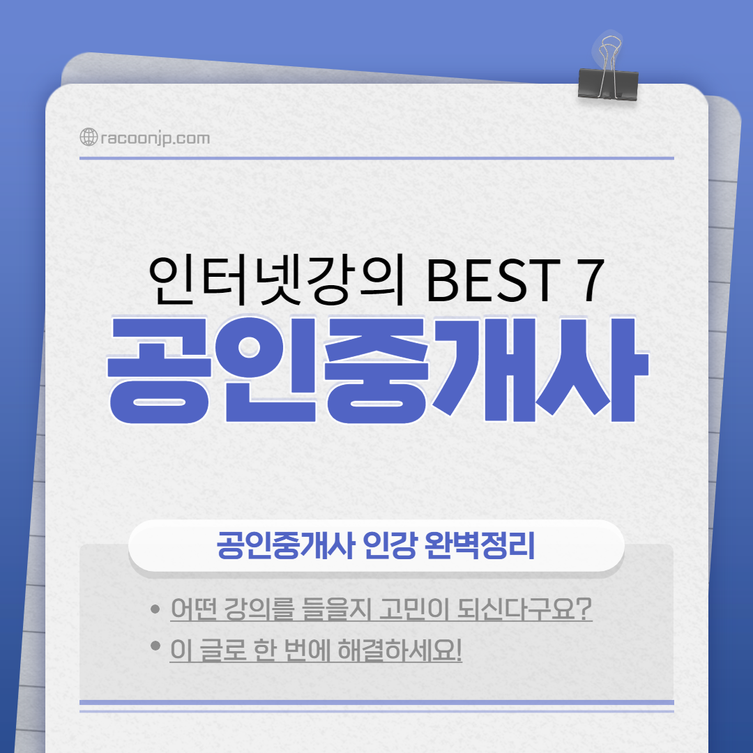 무료 공인중개사 인강 추천 사이트를 알아보시는 분들은 공인중개사 무료 인강 추천 글을 확인해보시길 바랍니다.